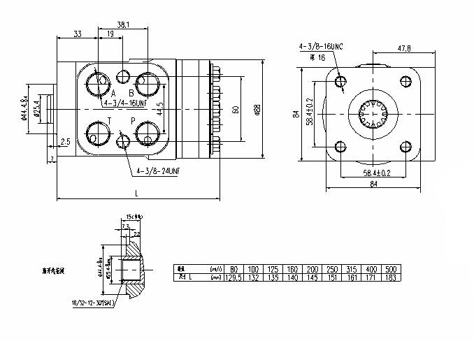 070 S系列 070系列轉向器將外聯法蘭與閥體合 為一體,整機長度比標準轉向器短。 因此結構緊湊,安裝方便。 特點 •軸向尺寸短、結構緊湊、安裝方便 •低液壓噪音 •鑄造內通道設計,壓力損失小 •可選擇開芯、閉芯、負荷傳感回路 主要性能參數 *大入口壓力…………16MPa *大連續背壓 …………2.1MPa 轉向力矩……………1.7~2.5Nm *高系統溫度 ……………93°C 推薦油液清潔度………ISO 19/16 070 S系列外形聯接尺寸 ![]() |
