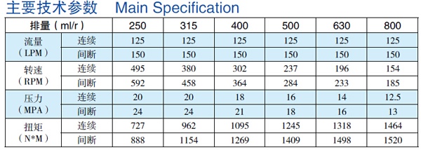 說明: 1.*大連續值:馬達可以連續工作的*大值。 2.間斷值:允許馬達一分鐘內持續6秒的*大值。 3.避免在同時*大速和*高壓力的工況下使用。 4.馬達的*佳工況范圍:1/3~2/3連續工作工況。 |